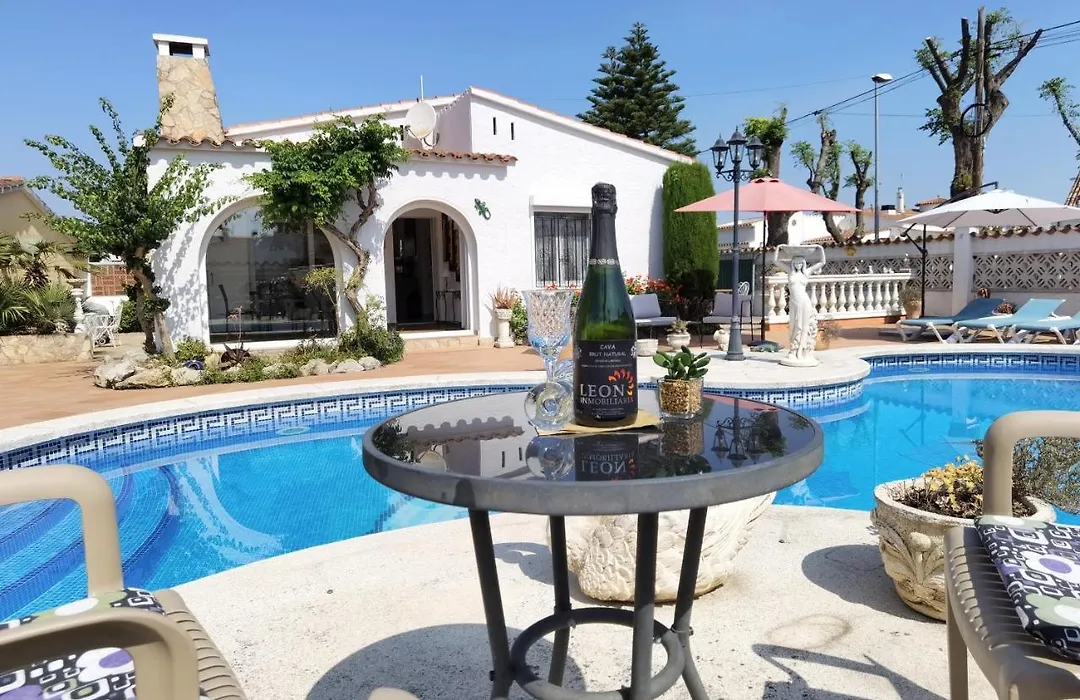 Leon Inmo Casa Ella - 13009 Villa Empuriabrava ligt binnen 3 km van de Minigolf Carmanso en nodigt gasten uit om te ontspannen op een terras.